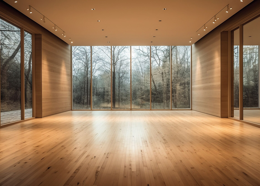 Instalé una tarima flotante de tono roble claro en un salón amplio, con luz natural. El resultado fue un espacio cálido, moderno y muy acogedor.